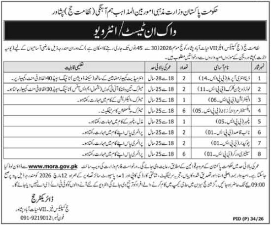 The Ministry of Religious Affairs & Interfaith Harmony, Hayatabad Peshawar, invites applications from eligible candidates for multiple positions as advertised in the Daily Mashriq Newspaper dated 03 March, 2026.