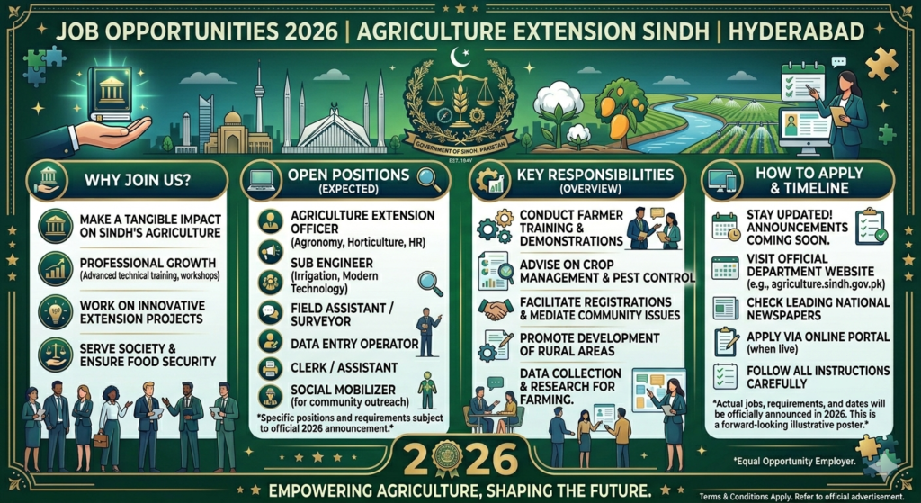 - Last Date to Apply: Job At Agriculture Extension Sindh Hyderabad In 26 April, 2026 (or as mentioned in newspaper ad)