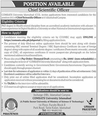 • Last Date to Apply: Job at Comsats University Opportunity In 2026 12 April, 2026 (or as per newspaper advertisement)