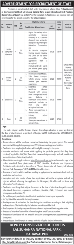 - Expected Last Date: Job At Conservator Of Forests Bahawalpur In 2026 15 April, 2026 (or as per newspaper ad)