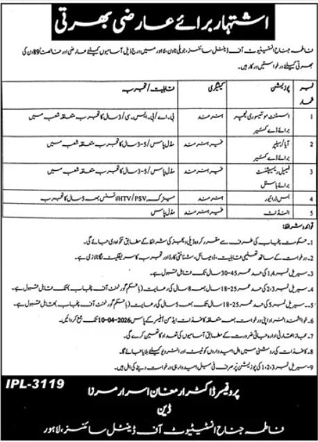 Fatima Jinnah Institute of Dental Sciences has announced multiple vacancies in Lahore, Punjab, Pakistan, as per the job advertisement published in the Daily Jang Newspaper dated 01 April, 2026.