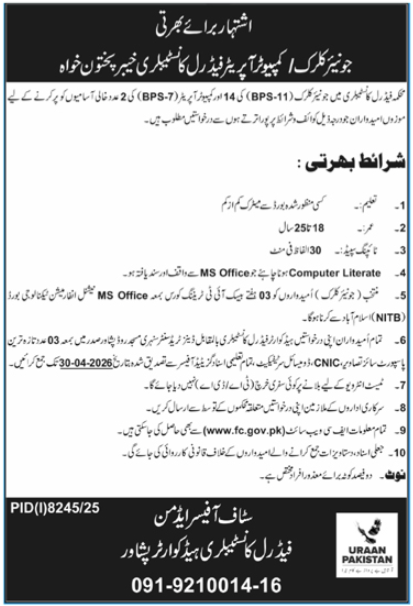 Advertisement Job At Federal Constabulary Peshawar In 2026