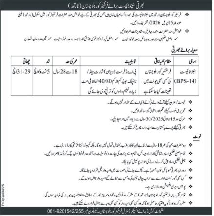 Advertisement Job At Frontier Core Balochistan Quetta In 2026