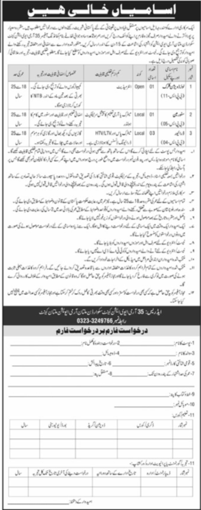 A Government Organization has announced new job opportunities as per advertisement published in the daily Khabrain newspaper on 13 April 2026. Applications are invited from eligible candidates for the following positions in Cantt, Multan: