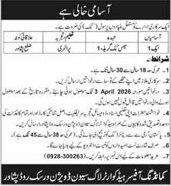 A Government Organization has announced job vacancies through the Mashriq newspaper dated 30 March, 2026 for positions based in Warsak Road, Peshawar, Khyber Pakhtunkhwa (KPK), Pakistan.