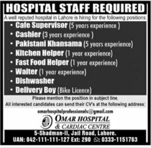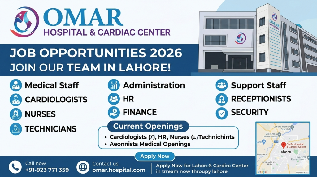- Expected Last Date: Job Opportunities at Omar Hospital & Cardiac Center Lahore 2026 07 April, 2026 or as per newspaper advertisement