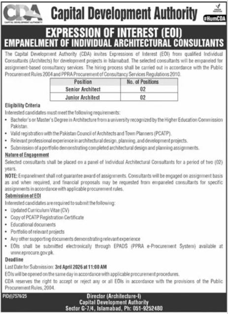 - Expected Last Date: Jobs At Capital Development Authority CDA Islamabad 03 April, 2026 (or as per newspaper advertisement)