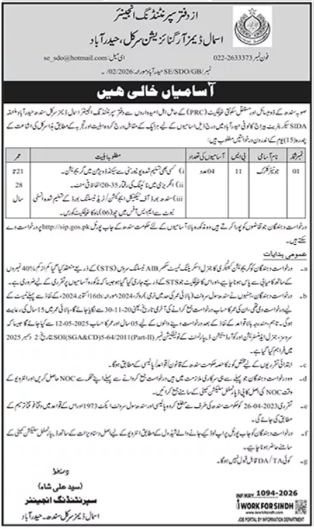 The Irrigation Department has announced job vacancies in Hyderabad, Sindh, as per the advertisement published in the Daily Dunya Newspaper on 18 March 2026.