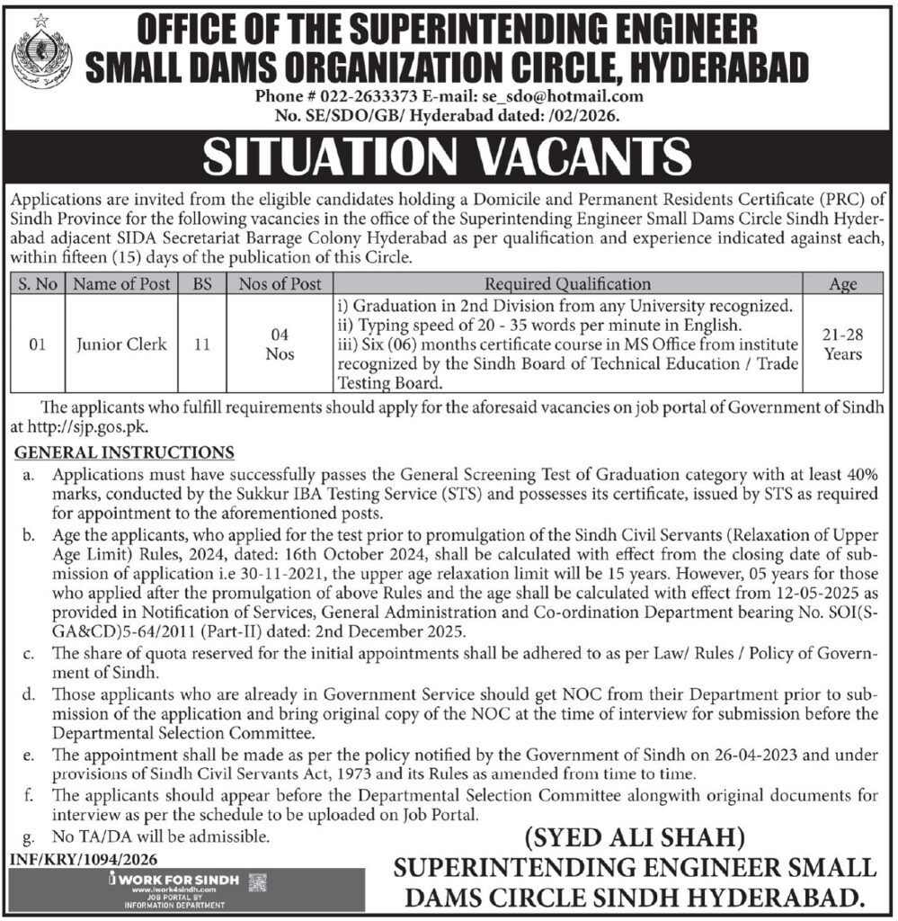 • Last Date to Apply: Jobs At Small Dams Organization Circle Hyderabad 1 April, 2026 (or as per official advertisement)