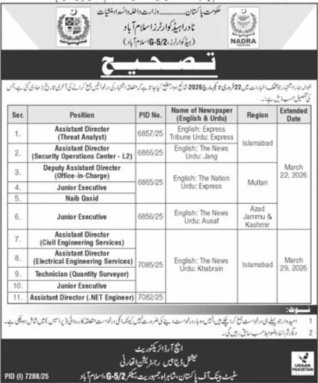 - Last Date to Apply: Latest Jobs at NADRA Headquarters 29 March, 2026 (or as mentioned in the newspaper advertisement)