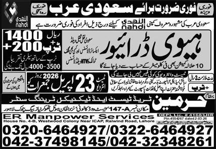 Applicants can apply for the latest overseas driving jobs at Harmain Trade Test & Technical Training Center until 23 April 2026, or as mentioned in the official newspaper advertisement. Interested candidates are advised to read the complete ad online for application details and procedure. Salary packages start from 119,000 Rs.