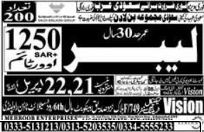 Vision Technical Training Center is inviting applications for labor positions as advertised in the Daily Express newspaper on 18 April, 2026. These vacancies are available in Dammam and Tabuk, Saudi Arabia.