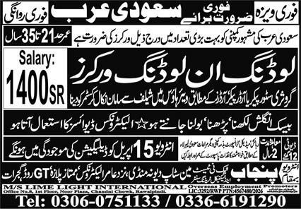 Punjab Techni Test & Technical Training Center, Jeddah (Makkah, Saudi Arabia) is inviting applications from suitable candidates for the positions of Loading Worker and Unloading Worker, as advertised in the daily Express Newspaper on 14 April, 2026.