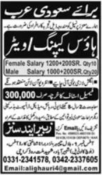 Zubair and Sons has announced new job opportunities through an advertisement published on 19 April 2026 in the daily Jang Newspaper. Applications are invited for the positions of housekeeping staff and waiter in Riyadh, Saudi Arabia. Candidates with Primary or Middle level education will be given preference.