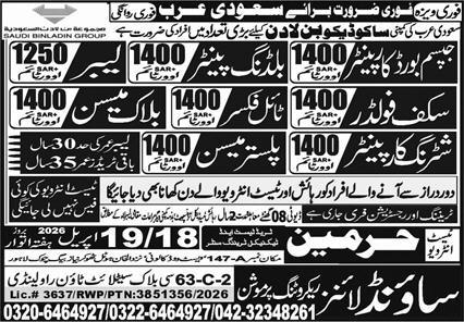 Harmain Trade Test & Technical Training Center is inviting applications for multiple construction positions as advertised in the Daily Express dated 14 April 2026. These vacancies are available in Dammam and Al Khobar, Saudi Arabia.